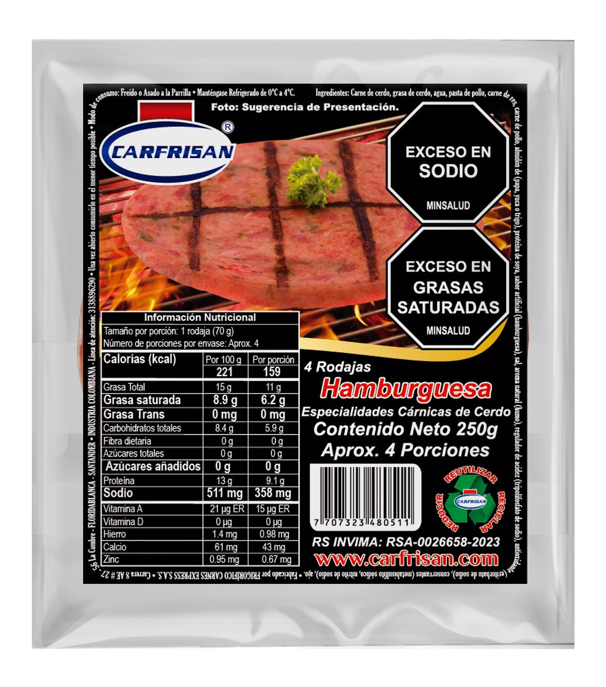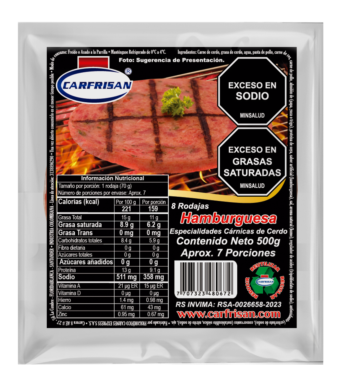 | Presentación | Paquete x 500g x 8 Rodajas |