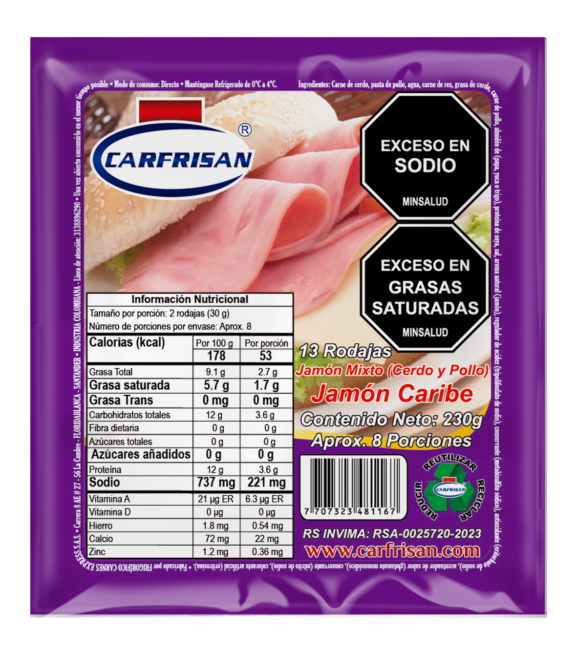 | Presentación | Paquete x 2.400g x 140 Rodajas |