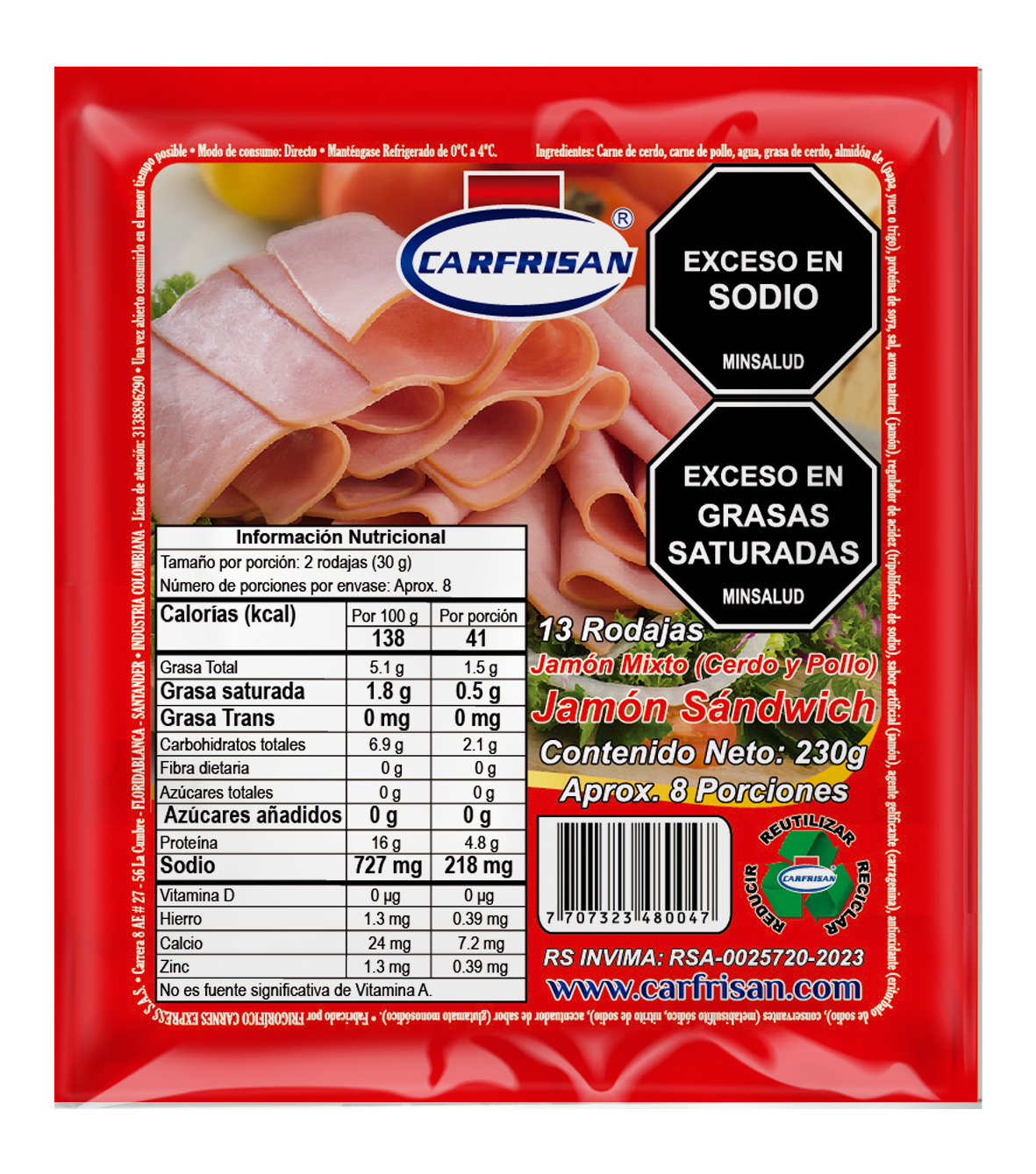 | Presentación | Paquete x 2.400g x 140 Rodajas |