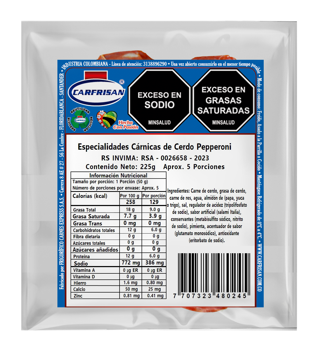 | Presentación | Paquete x 225g x 50 Rodajas |