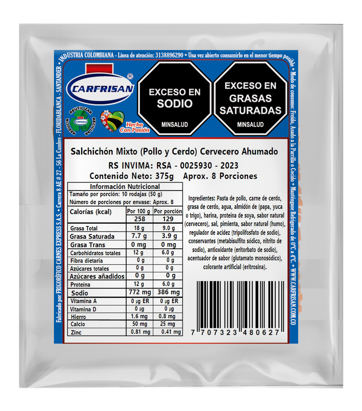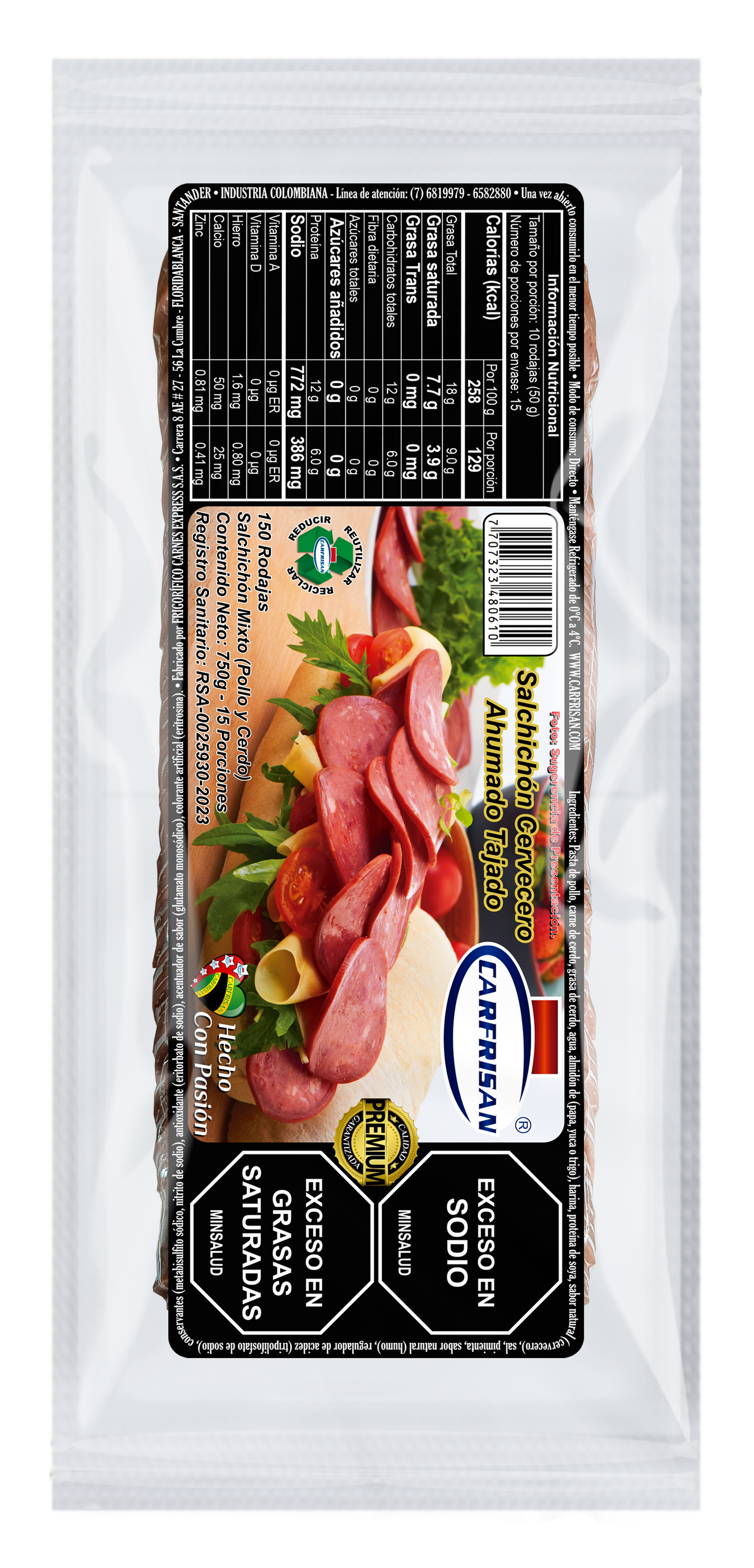 | Presentación | Paquete x 750g x 150 Rodajas |